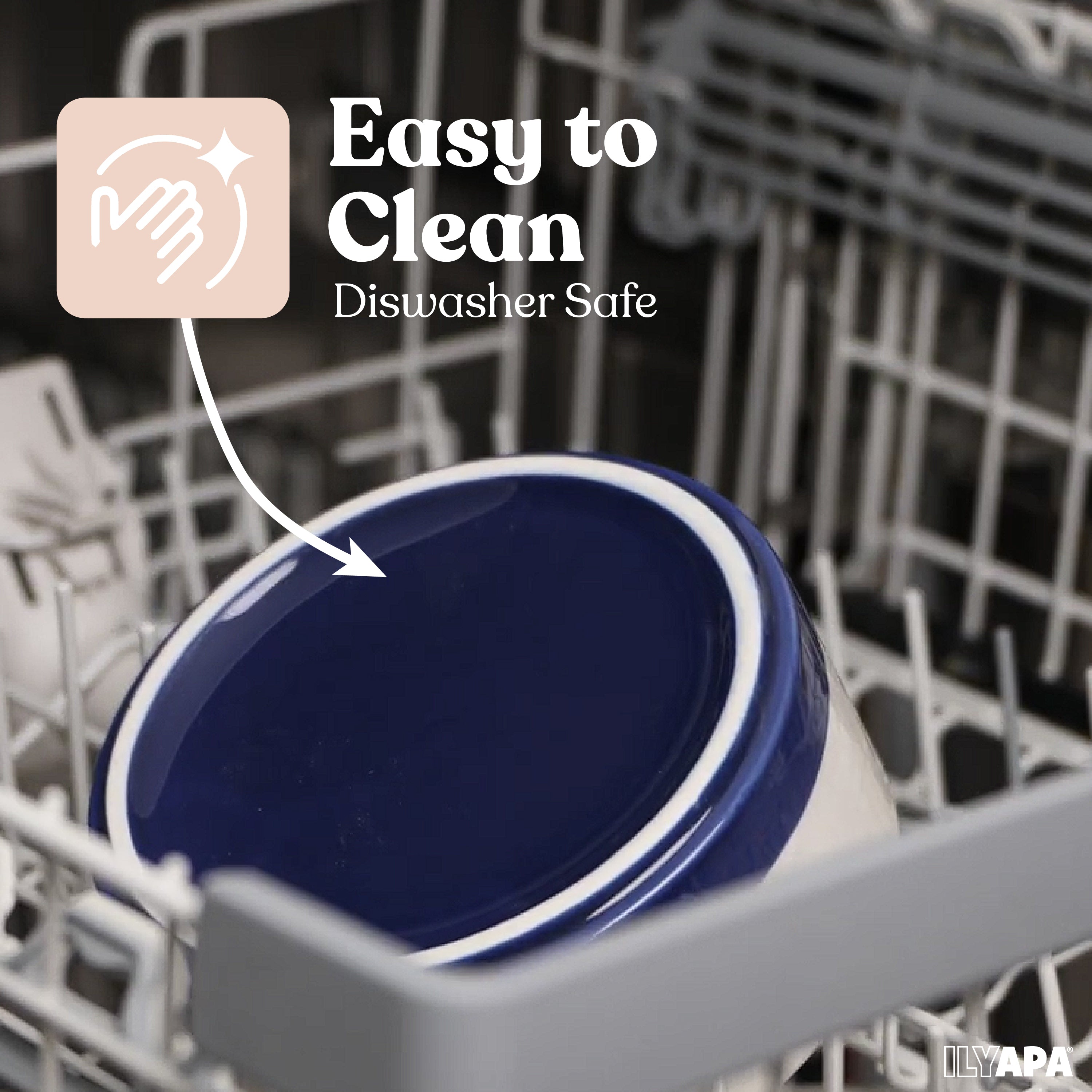 Ceramic Dog Bowls - Elevated for Medium Sized Pet with Raised Food and Water Set - Blue Double 6 inch, 28 Oz Bowls & 13x6.3x5.5 Wooden Stand
