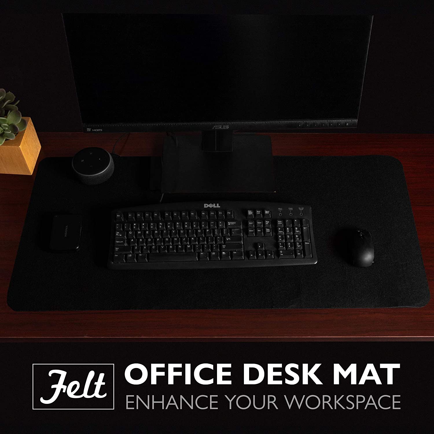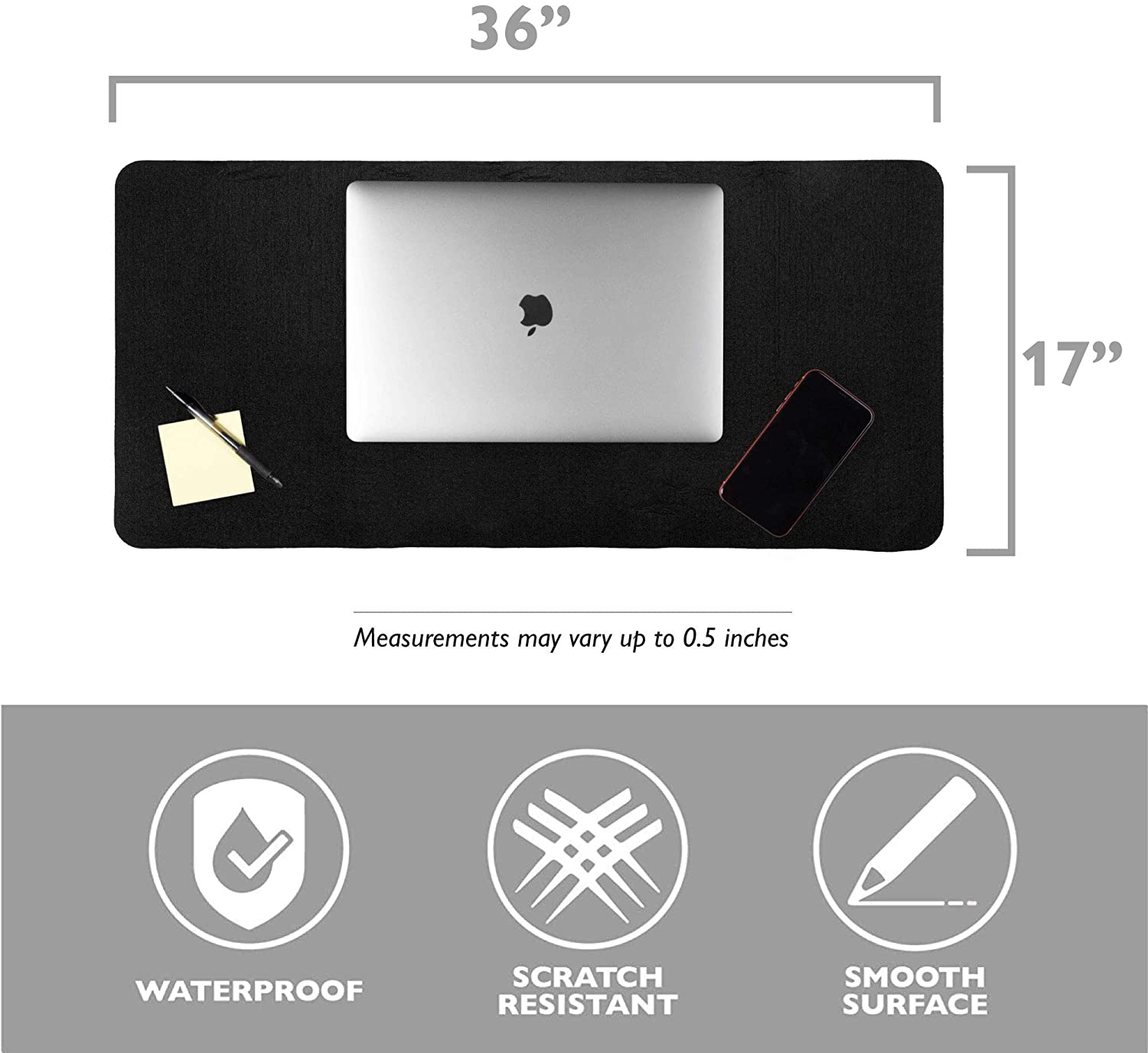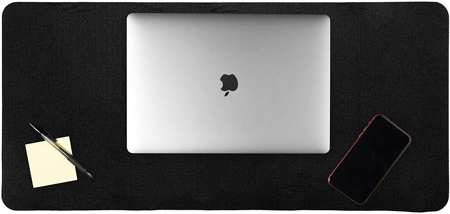 Felt Desk Pad, Black Heather - 36 x 17 Inch Office Computer Mat for Desk