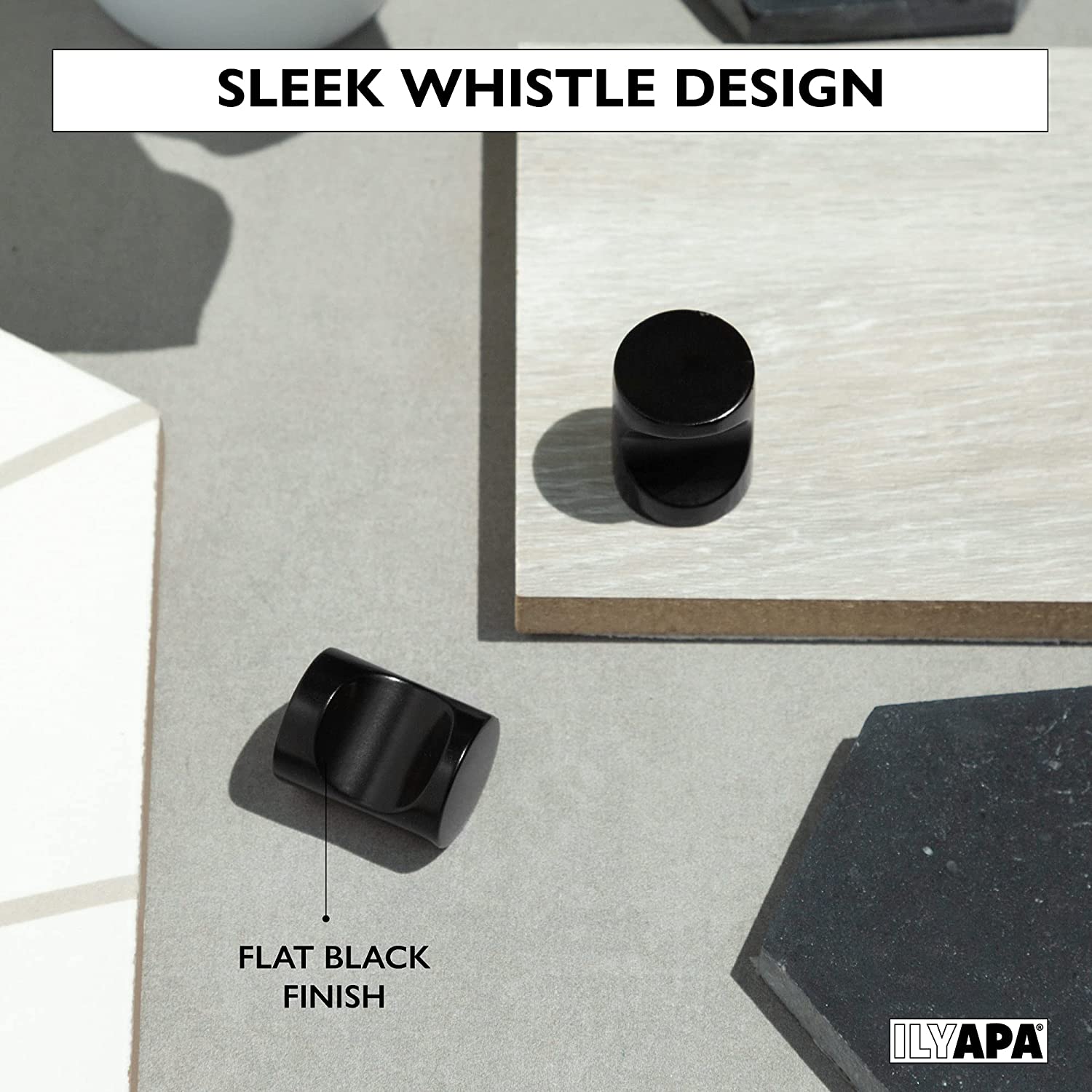Ilyapa Flat Black Kitchen Cabinet Knobs - Minimalist Cylindrical Whistle Knob Handles - 10 Pack of Kitchen Cabinet Hardware