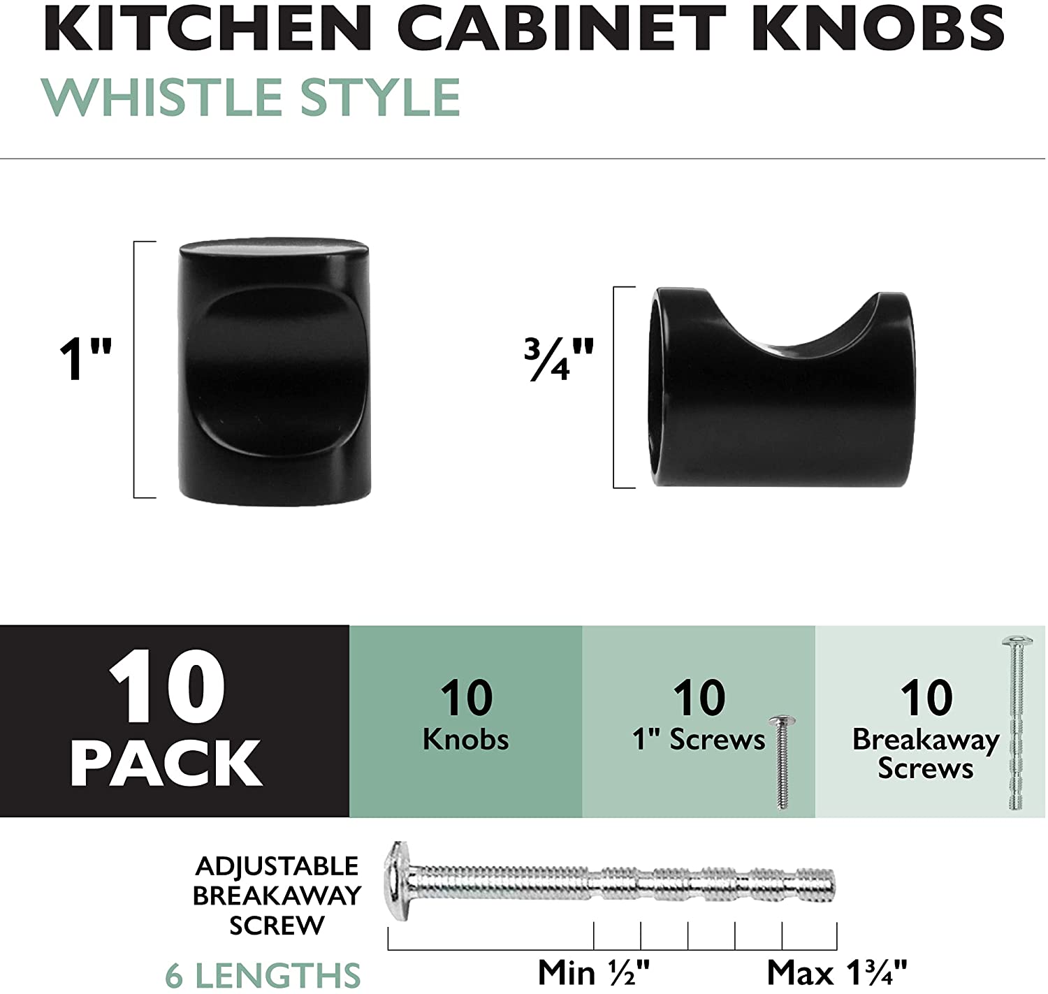Ilyapa Flat Black Kitchen Cabinet Knobs - Minimalist Cylindrical Whistle Knob Handles - 10 Pack of Kitchen Cabinet Hardware  ...