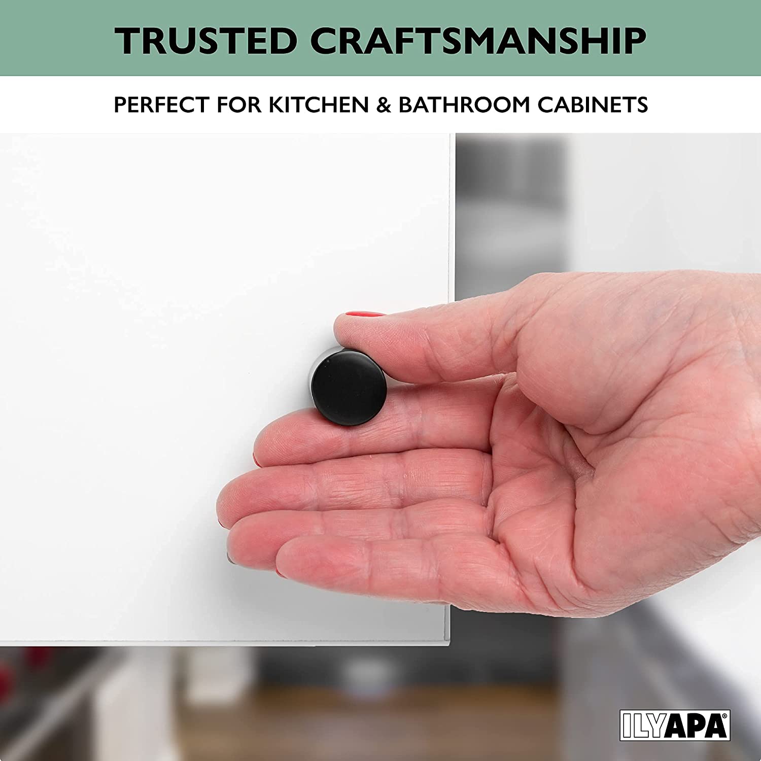 STRONG DURABLE DESIGN & ELEGANT FLAT BLACK FINISH make these knobs perfect for kitchen cabinets, dresser drawer handles, drawer pull knobs, and more! A long lasting, beautiful addition to any home. INDIVIDUALLY WRAPPED to protect against scratches. INCLUDES FREE 1 inch and 1 3/4 inch customizable length break away mounting screws. PERFECT ADDITION TO ANY HOME as kitchen cabinet knobs, dresser knobs, drawer knobs, drawer pulls, dresser. drawer handle knobs, bathroom cabinets and drawers, cupboard, desk drawer, wardrobe drawers, shoe cabinet, chest, bookcase and much more! FREE LIFETIME WARRANTY - Ilyapa stands behind all of its kitchen cabinet hardware 100%. If anything ever goes wrong with your round drawer handles, we will replace them with a new item.