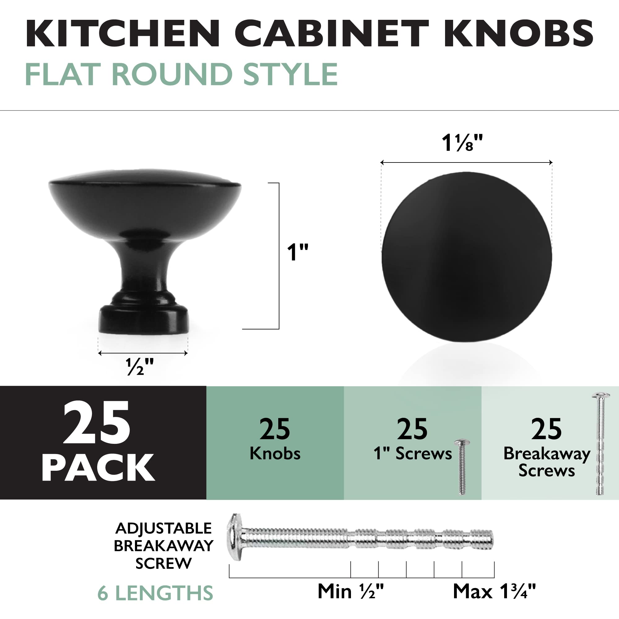 STRONG DURABLE DESIGN & ELEGANT FLAT BLACK FINISH make these knobs perfect for kitchen cabinets, dresser drawer handles, drawer pull knobs, and more! A long lasting, beautiful addition to any home. INDIVIDUALLY WRAPPED to protect against scratches. INCLUDES FREE 1 inch and 1 3/4 inch customizable length break away mounting screws. PERFECT ADDITION TO ANY HOME as kitchen cabinet knobs, dresser knobs, drawer knobs, drawer pulls, dresser. drawer handle knobs, bathroom cabinets and drawers, cupboard, desk drawer, wardrobe drawers, shoe cabinet, chest, bookcase and much more! FREE LIFETIME WARRANTY - Ilyapa stands behind all of its kitchen cabinet hardware 100%. If anything ever goes wrong with your round drawer handles, we will replace them with a new item.