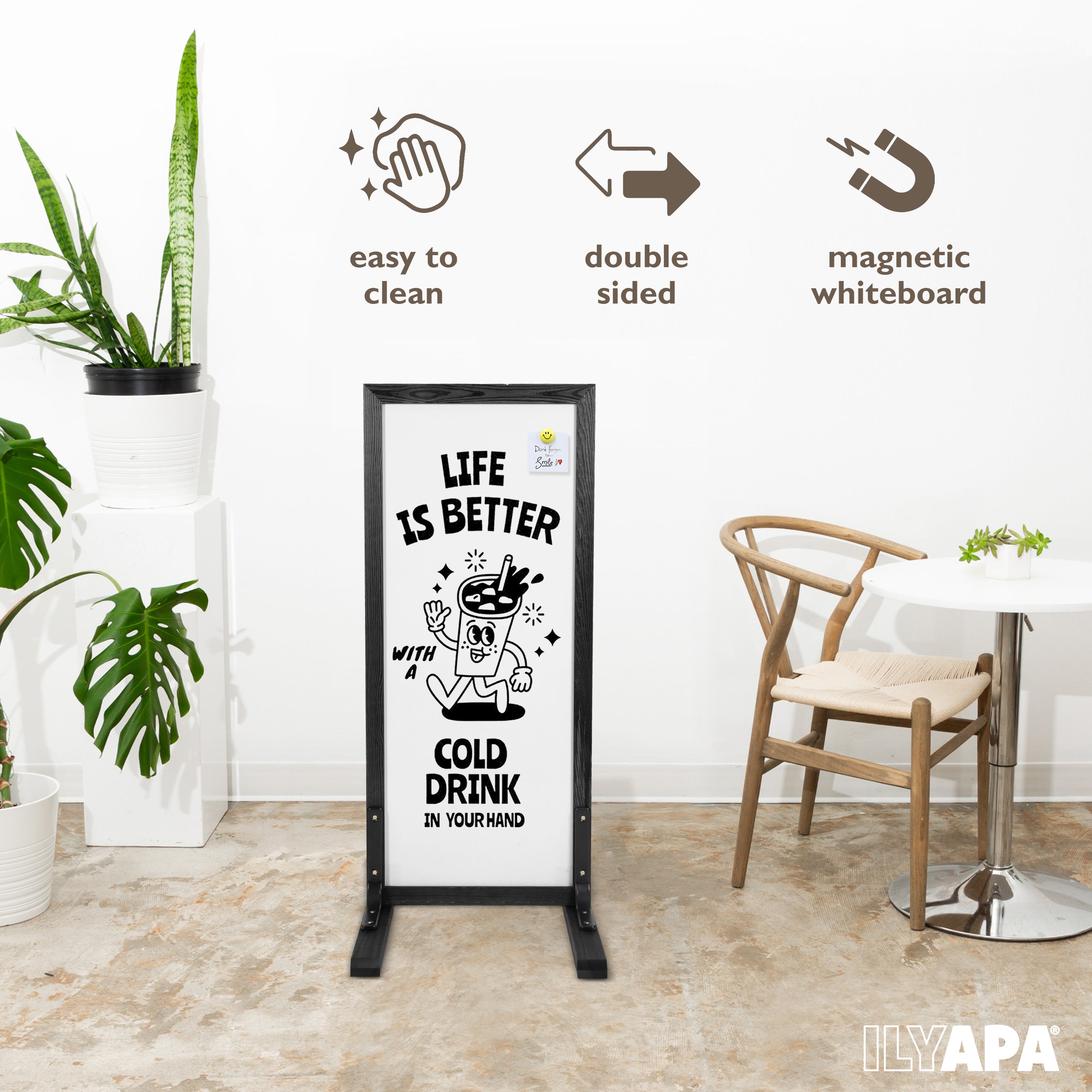 Large Whiteboard Sign - Free Standing Magnetic Sidewalk Sign - Outdoor Menu for Restaurant, Food Truck, Party, or Wedding - 42x18 Inch - Black
