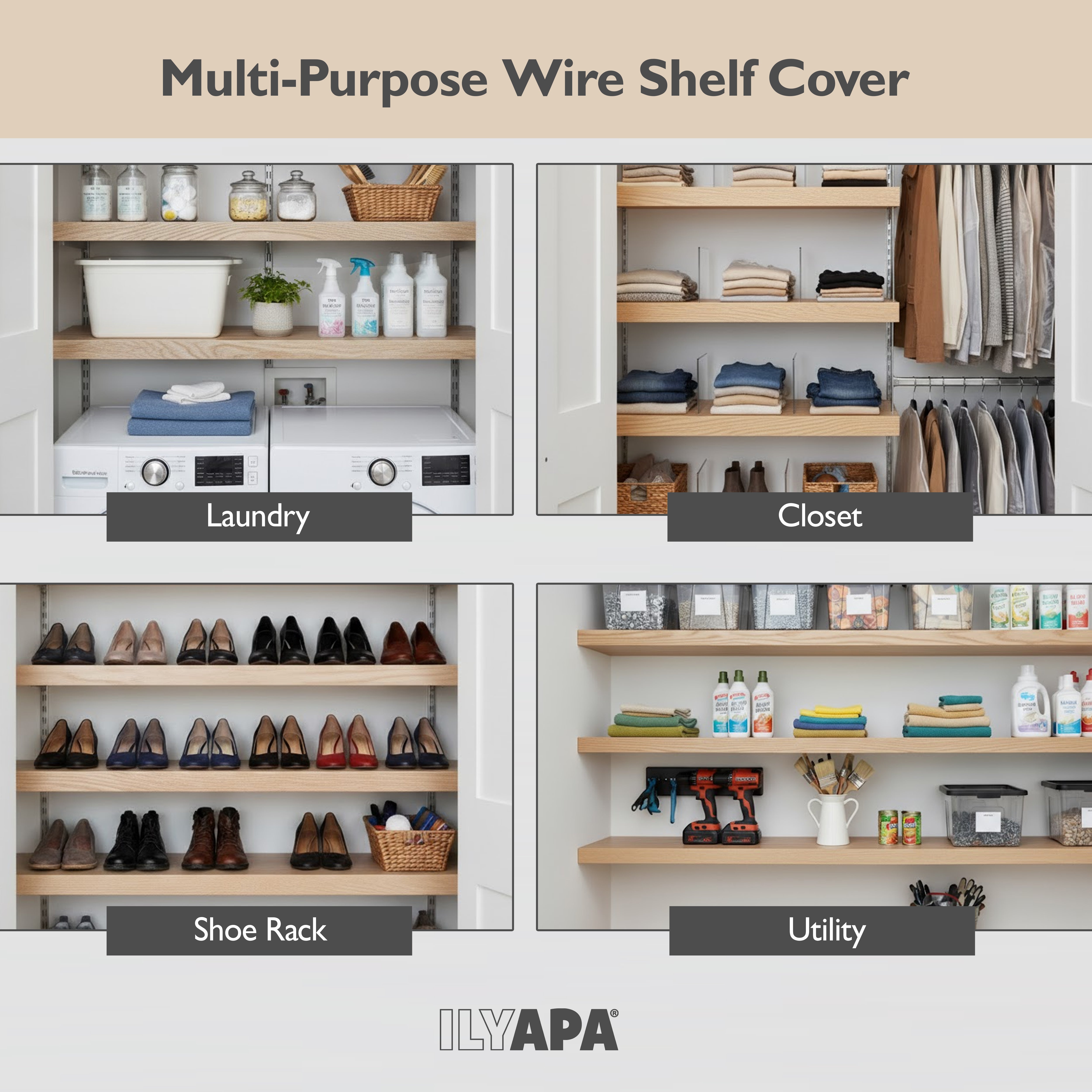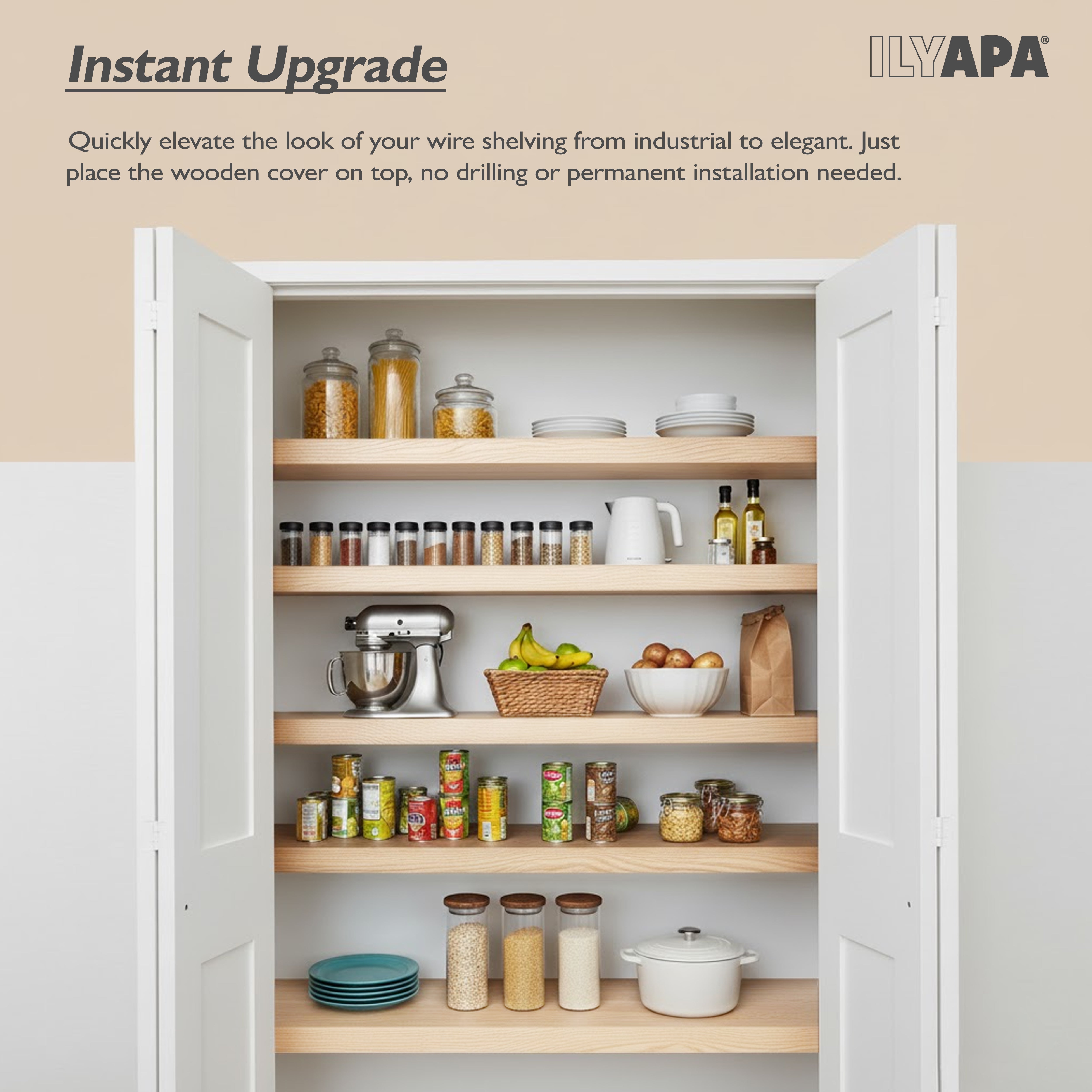 Upgrade Your Wire Shelves Instantly - Transform standard wire racks into sleek wood-look shelving with Ilyapa wire rack covers. These...